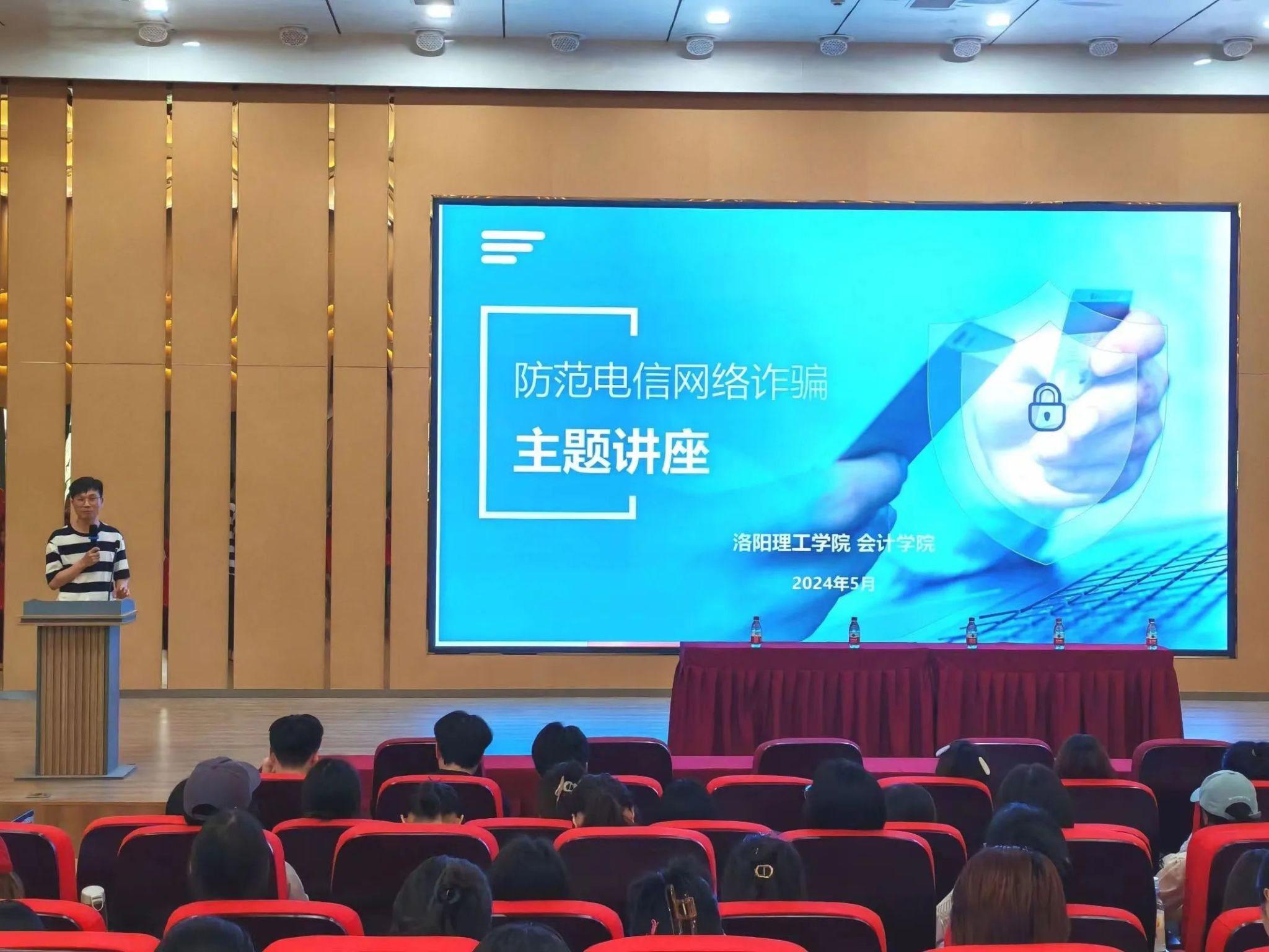 讲座伊始,王倩指出,随着互联网技术的发展,诈骗手法层出不穷,给学生的财产安全带来了严重威胁。她详细介绍了当前流行的电信网络诈骗类型以及主要受骗群体,并通过真实案例带同学们了解了诈骗分子的作案手法。