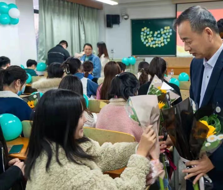 “好运接力·一举夺葵”。老师们为每一位奋战的同学们分发向日葵,一朵向日葵包含着领导老师们对学生的殷切期待和祝福,温暖着考研学子的内心,相信追梦之旅一定会一路阳光灿烂!