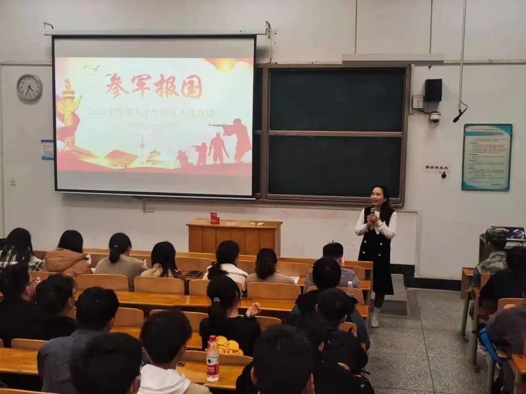 于12月4日举办了2022年春季大学生应征入伍宣讲。此次宣讲的主讲人为学工部国防教育科科长石阿娜老师。与会的有学工办副主任黄宇飞、团委副书记郭佳炜、辅导员司吉梅、王琳、王倩、张梦华、温跃卫以及会计美高梅娱乐场