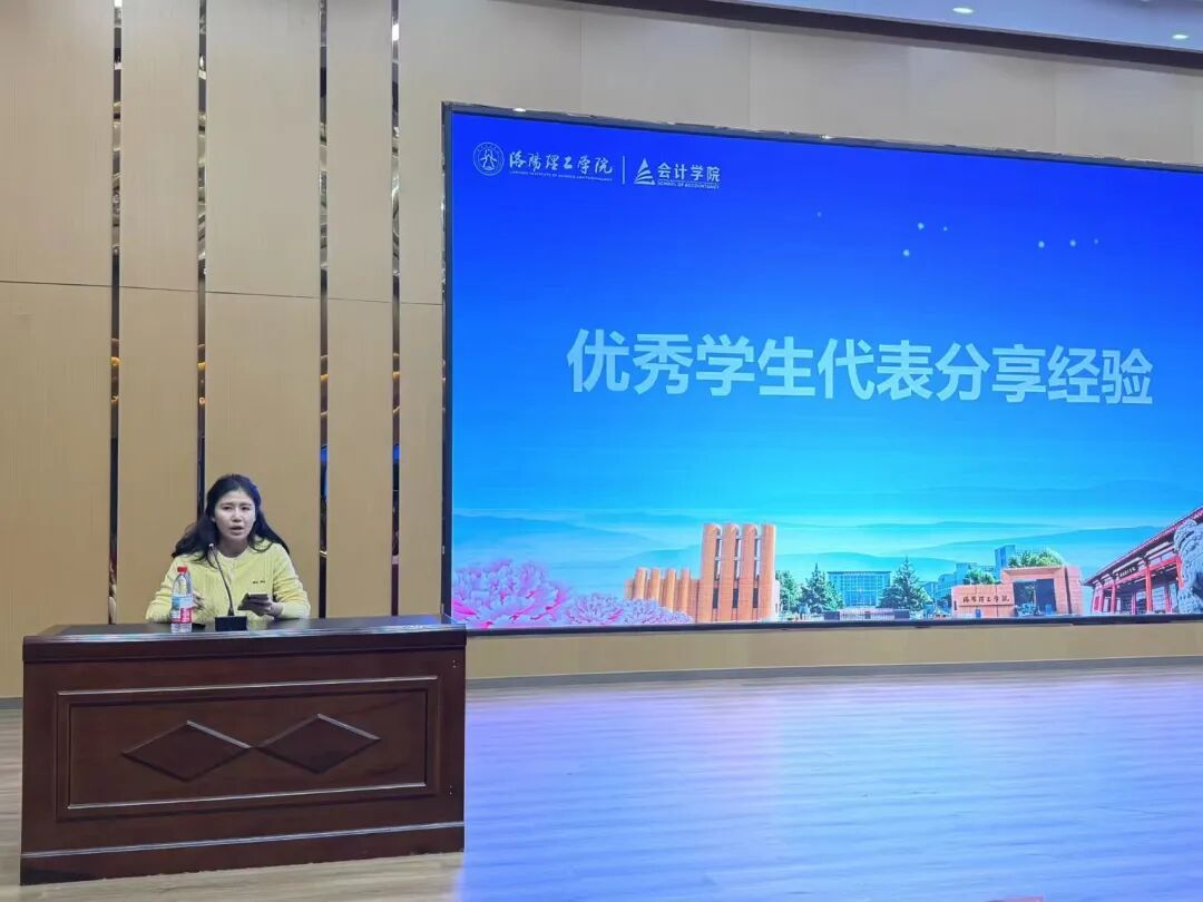 学生代表周芳羽分享从洛阳本土文化中挖掘灵感打造项目的经历,郭明慧讲述休学返乡投身牛羊肉产业创业的故事,鼓励同学勇于参赛、善用资源,在挫折中成长。