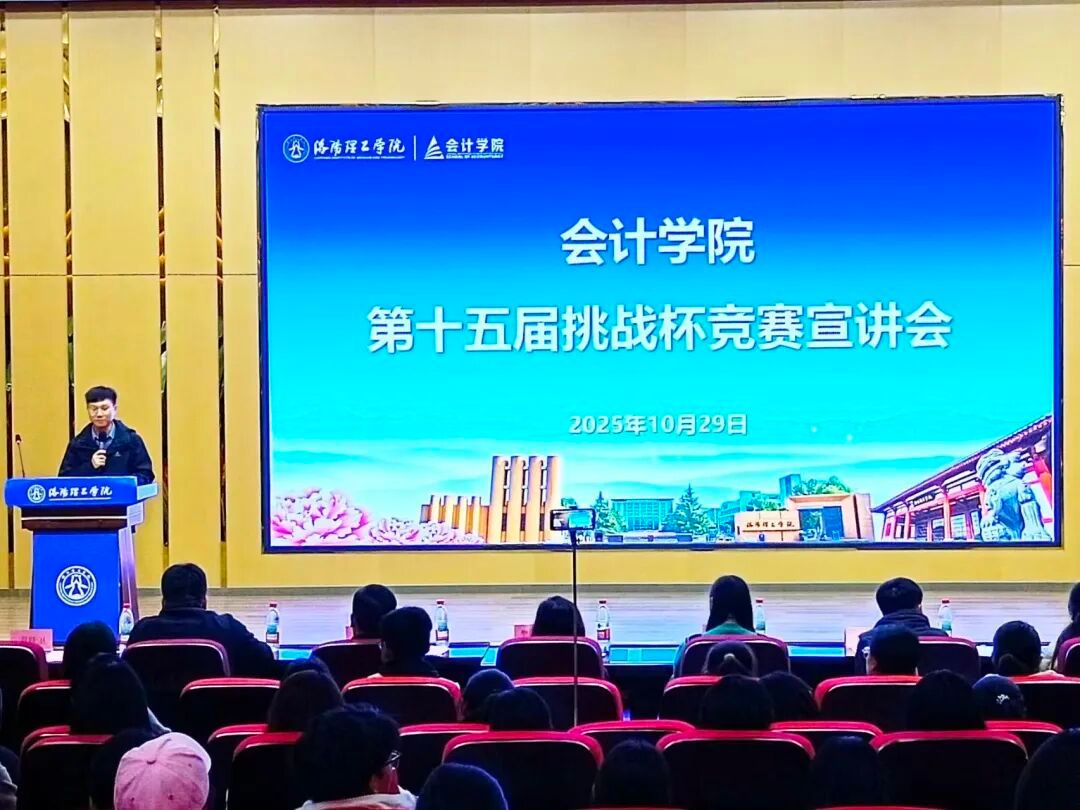 于西区报告厅举办第十五届“挑战杯”中国大学生创业计划竞赛宣讲会,旨在激发学生创新创业热情、搭建实践育人平台。校团委副书记樊伊人,会计美高梅娱乐场