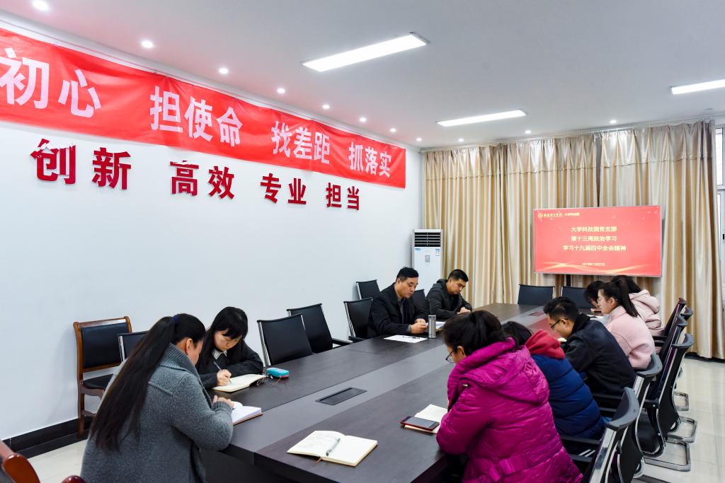 雷海栋表示,党的十九届四中全会是我国发展建设时期的一次关键会议,大学科技园党支部要把学习贯彻好党的十九届四中全会精神作为当前和今后时期的一项重要政治任务。他要求,全体党员要带着感情学习、带着责任学习、带着任务学习,深刻认识党的十九届四中全会的重要意义,增强“四个意识”、坚定“四个自信”、做到“两个维护”,深入学习、宣传、阐释、贯彻、落实好全会精神,推进全会精神在大学科技园落地生根。