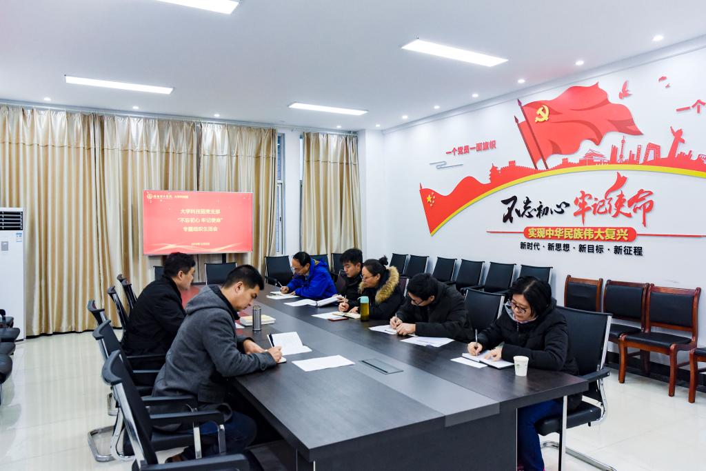 大学科技园党支部召开“不忘初心 牢记使命”专题组织生活会开展民主评议工作。支部全体党员参加本次会议。