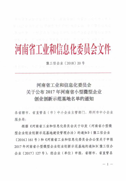 根据《河南省工业和信息化委员会关于印发〈河南省小型微型企业创业创新示范基地建设管理办法〉的通知》(豫工信企业〔2016〕161号)、《河南省工业和信息化委办公室关于申报河南省小型微型企业创业创新示范基地的通知》(豫工信办企业〔2017〕127号)等文件精神,美高梅娱乐场