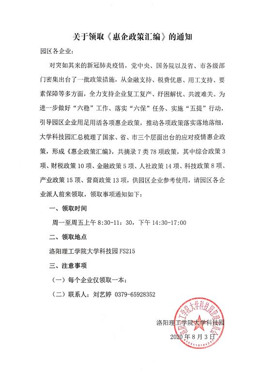 关于领取《惠企政策汇编》的通知