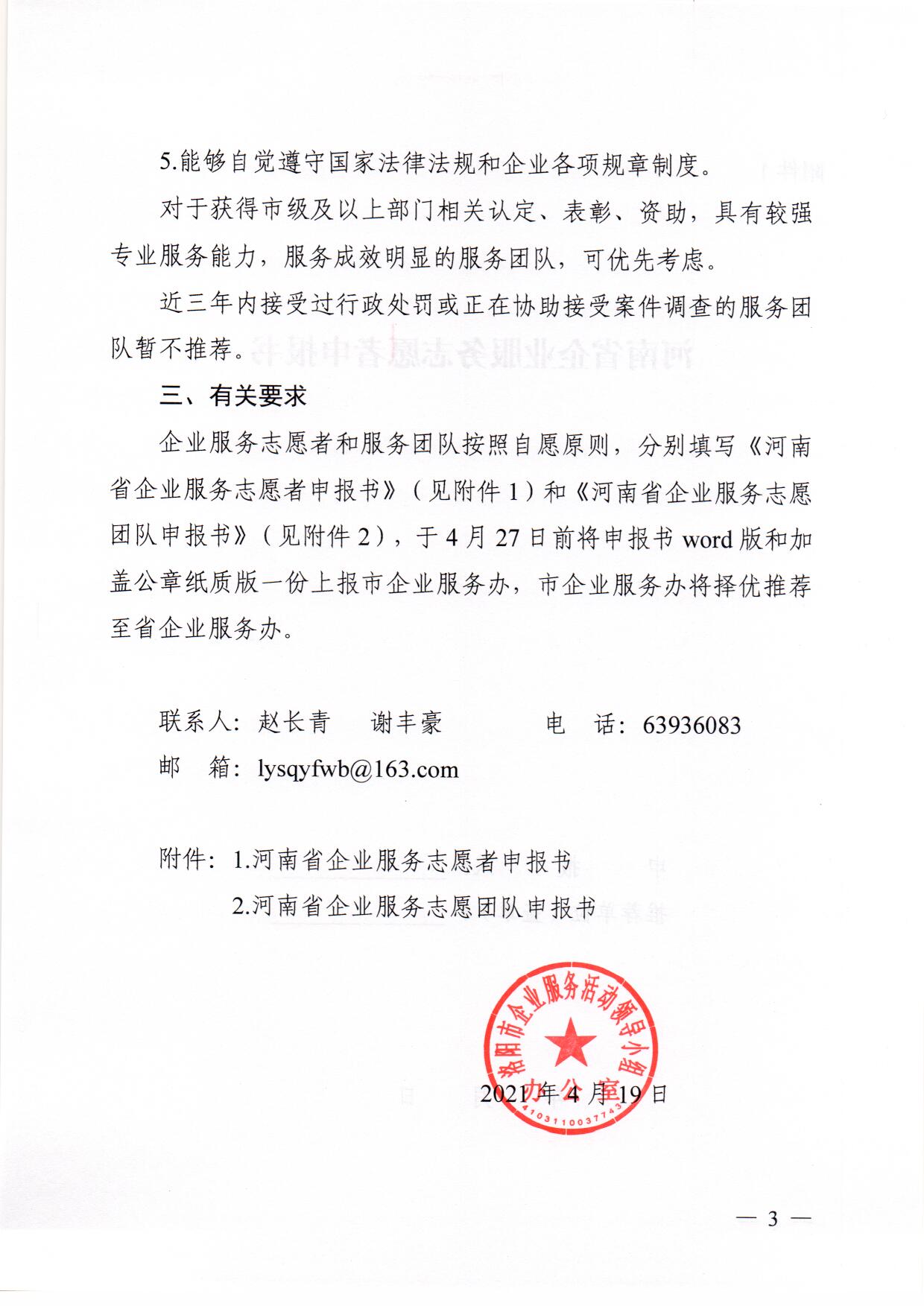 洛阳市企业服务活动领导小组办公室关于推荐企业服务志愿者和服务团队的通知