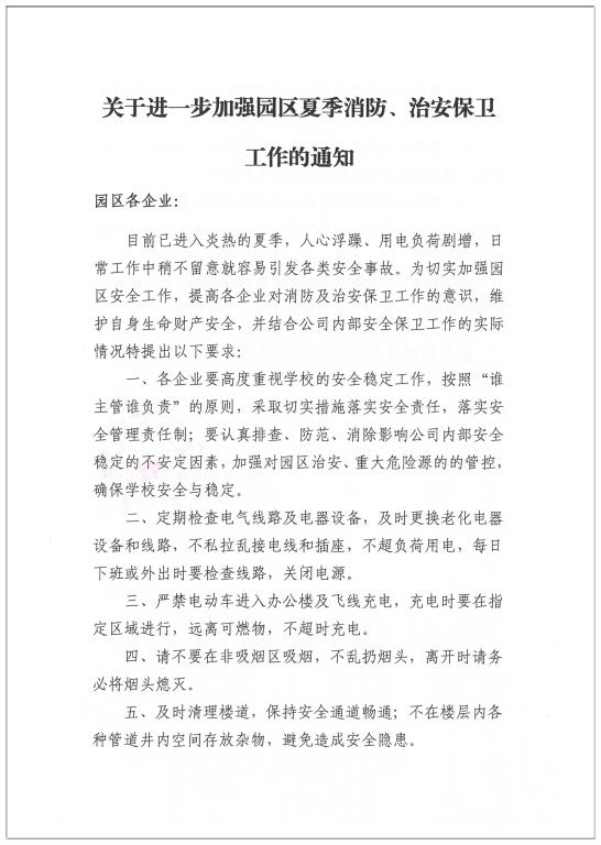 关于进一步加强园区夏季消防、治安保卫工作的通知.pdf
