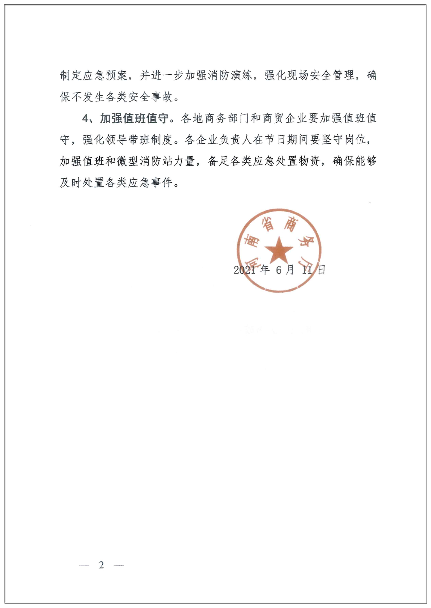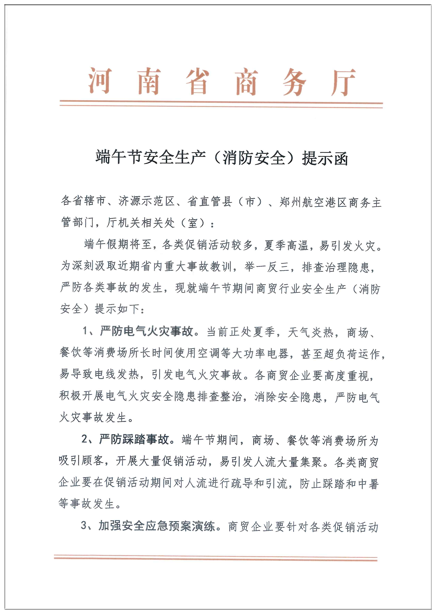 河南省商务厅关于端午节安全生产(消防安全)提示函