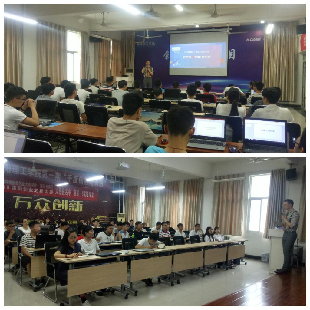 第一期“千度创客培训班”在创新大厦三楼路演厅正式开课;洛阳幻想科技文化有限公司总经理张航辉、大学科技园工作人员以及第一期培训班的38名学员参加活动。