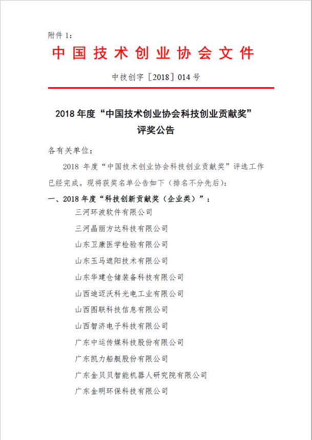 中国技术创业协会“科技创业贡献奖”是中国技术创业协会根据《国家创新驱动发展战略纲要》建立健全科学分类的创新评价制度体系,发展具有品牌和公信力的社会奖项”的有关精神,表彰在促进科技创业活动中绩效优异和做出突出贡献的创新型企业、创业投资机构、科技创业孵化机构、优秀创业导师,宣传优秀创新典范,营造创新创业良好氛围,为中国科技创新创业事业树立标杆而组织开展的评选活动 。