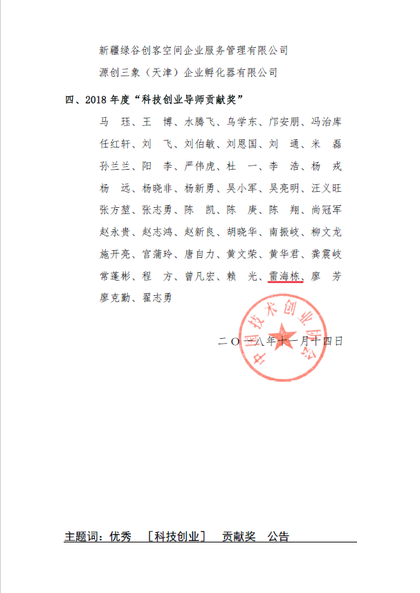大学科技园在2018年度“中国技术创业协会科技创业贡献奖”评选中,荣获“科技创业孵化贡献奖”和“科技创业导师贡献奖”两项大奖。
