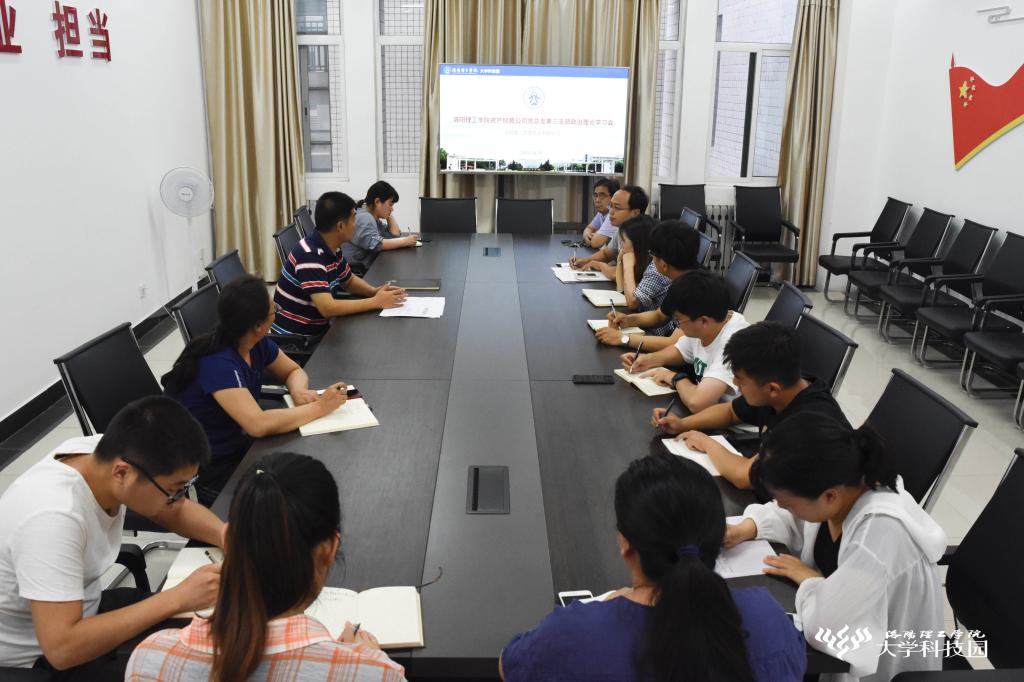 大学科技园全体员工参加了集体学习,资产经营公司党总支第三支部宣传委员王浩主持学习会。