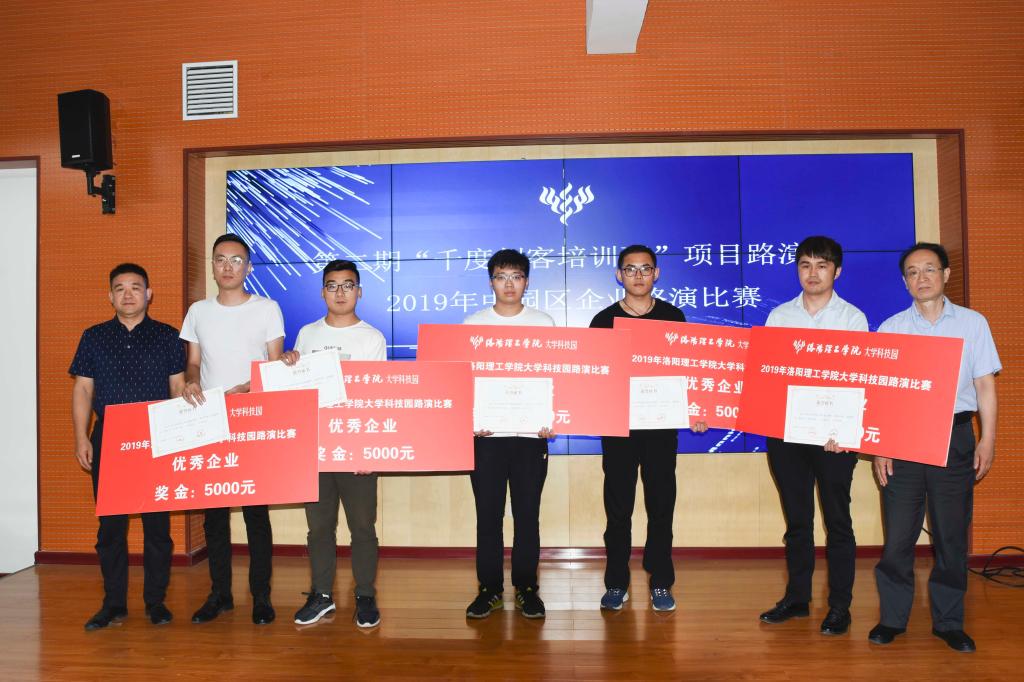 路演结束后根据评委打分公布了获奖名单,其中模块地图等五个团队获得第二期“千度创客培训班”项目路演优秀团队,奖金3000元;洛阳赤炎鹰网络科技有限公司等五家企业获得2019年中园区企业路演优秀企业,奖金5000元。