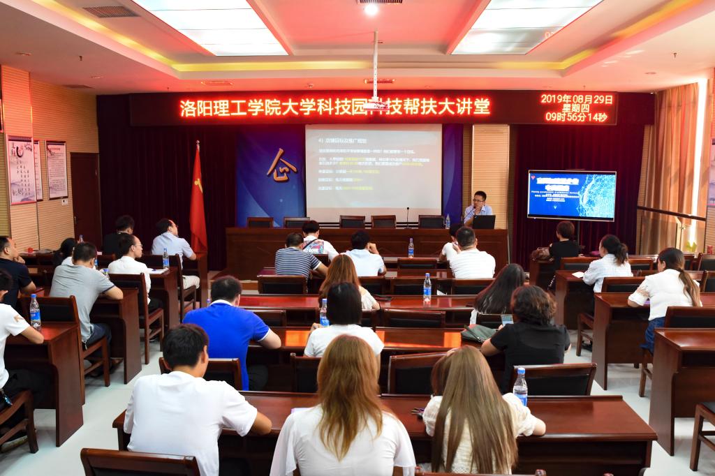 大学科技园第三期“科技帮扶大讲堂”专题活动在宜阳产业集聚区会议室顺利举行。洛阳浩翔互创网络科技有限公司总经理康期鹏、大学科技园宜阳加速器工作人员、以及集聚区内20余位企业负责人参加了大讲堂。