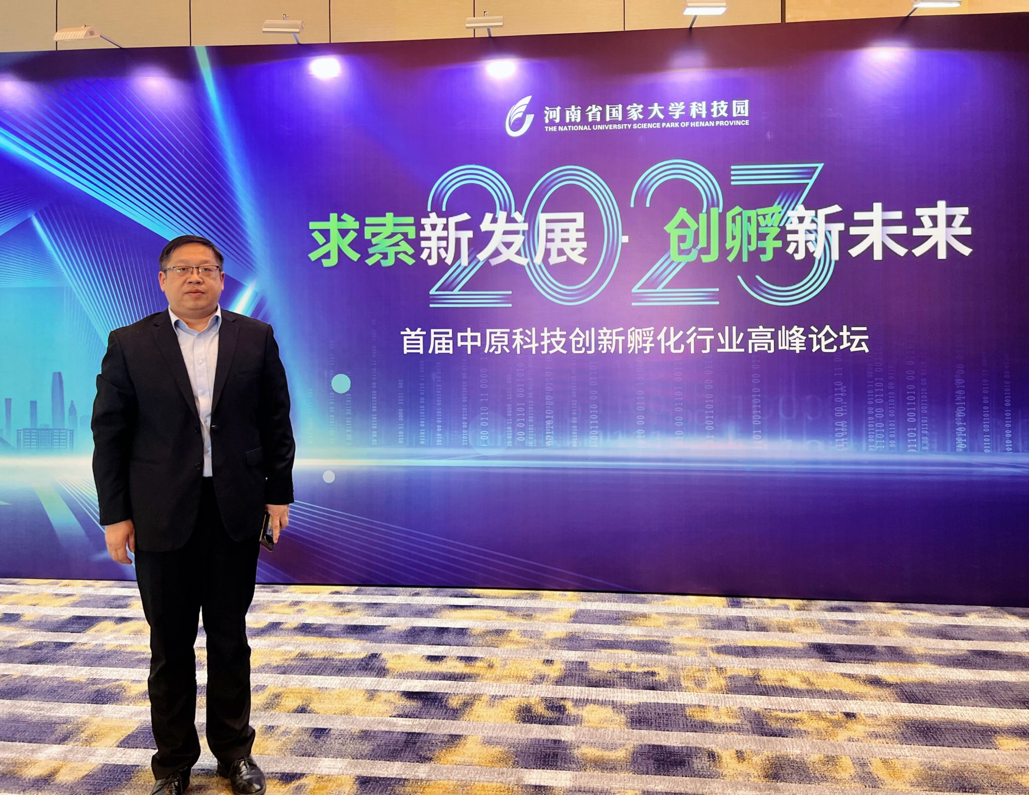 大学科技园管委会主任阎奔受邀参加在郑州高新区隆重举办的首届中原科技创新孵化行业高峰论坛暨河南省国家大学科技园20周年汇报展。大会以“求索新发展,创孵新未来”为主题,各知名国家大学科技园负责人及股东单位代表、省孵化器协会会员单位、园区企业、媒体等,共聚河南省国家大学科技园,通过参观、主题分享、对话等方式,为大学科技园在新时期的新发展献策支招,引人关注。