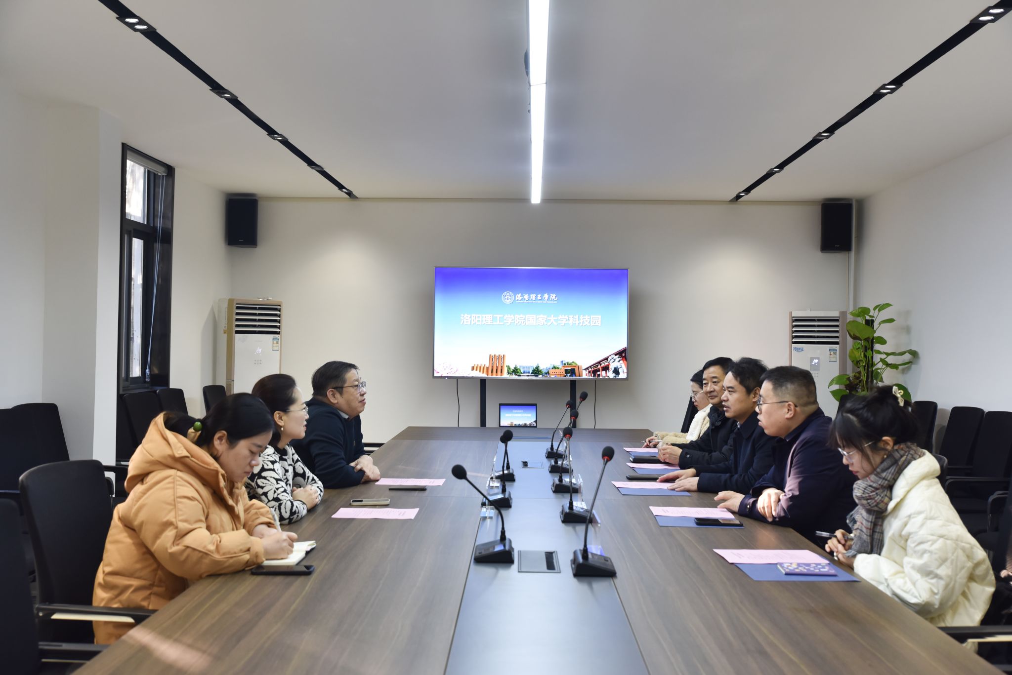 会上,双方还就科技资源引进、招商引资、高校对接等工作进行了深入探讨。会后,姜治国一行参观了河南诺霖新材料科技有限公司、洛阳飞度智能科技有限公司等园区企业。