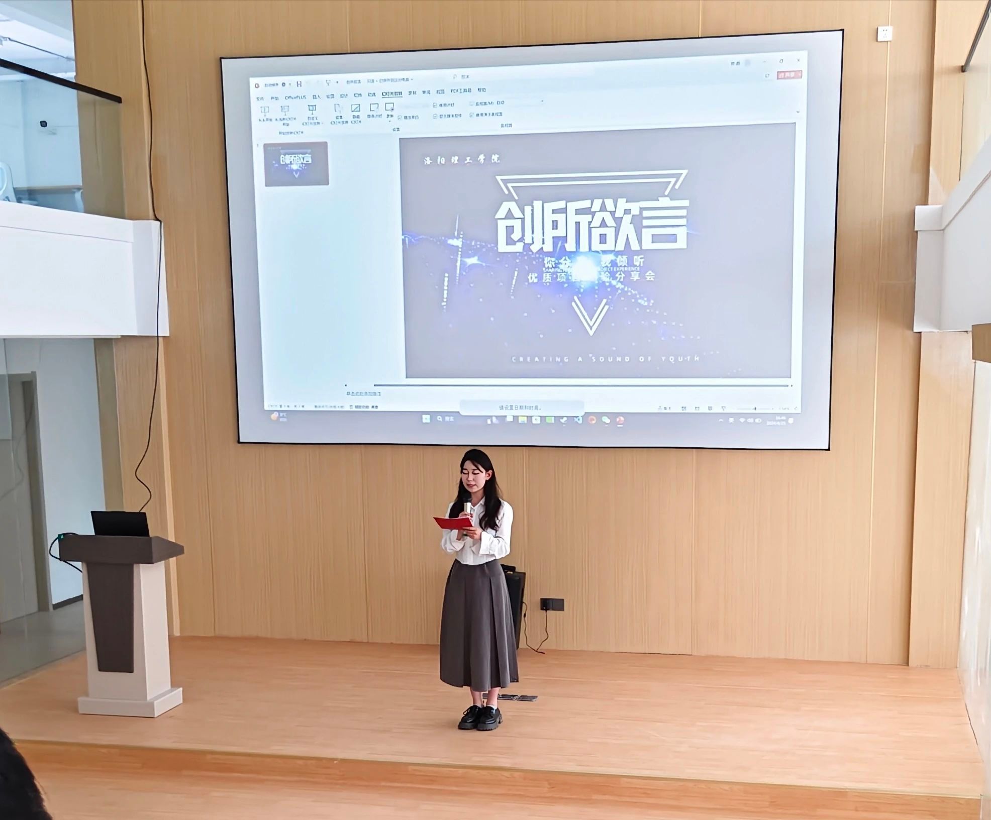 首先,郭琰琰同学结合自己的参赛经历,谈到在制作项目PPT时应当认真细致,避免因为一点小的失误,拉低评委的印象,并且要分清主次,利用有限的时间将团队的项目介绍清楚。