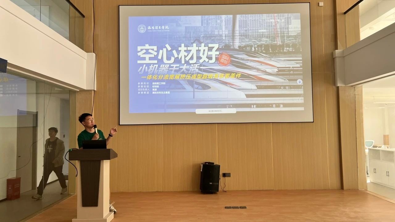 最后,高源同学以自己团队的项目“国际首创超级高铁覆盖件”为例,向同学们介绍了该项目开发背景、制作经历以及应用前景,并借此向同学们讲述科创的优势。