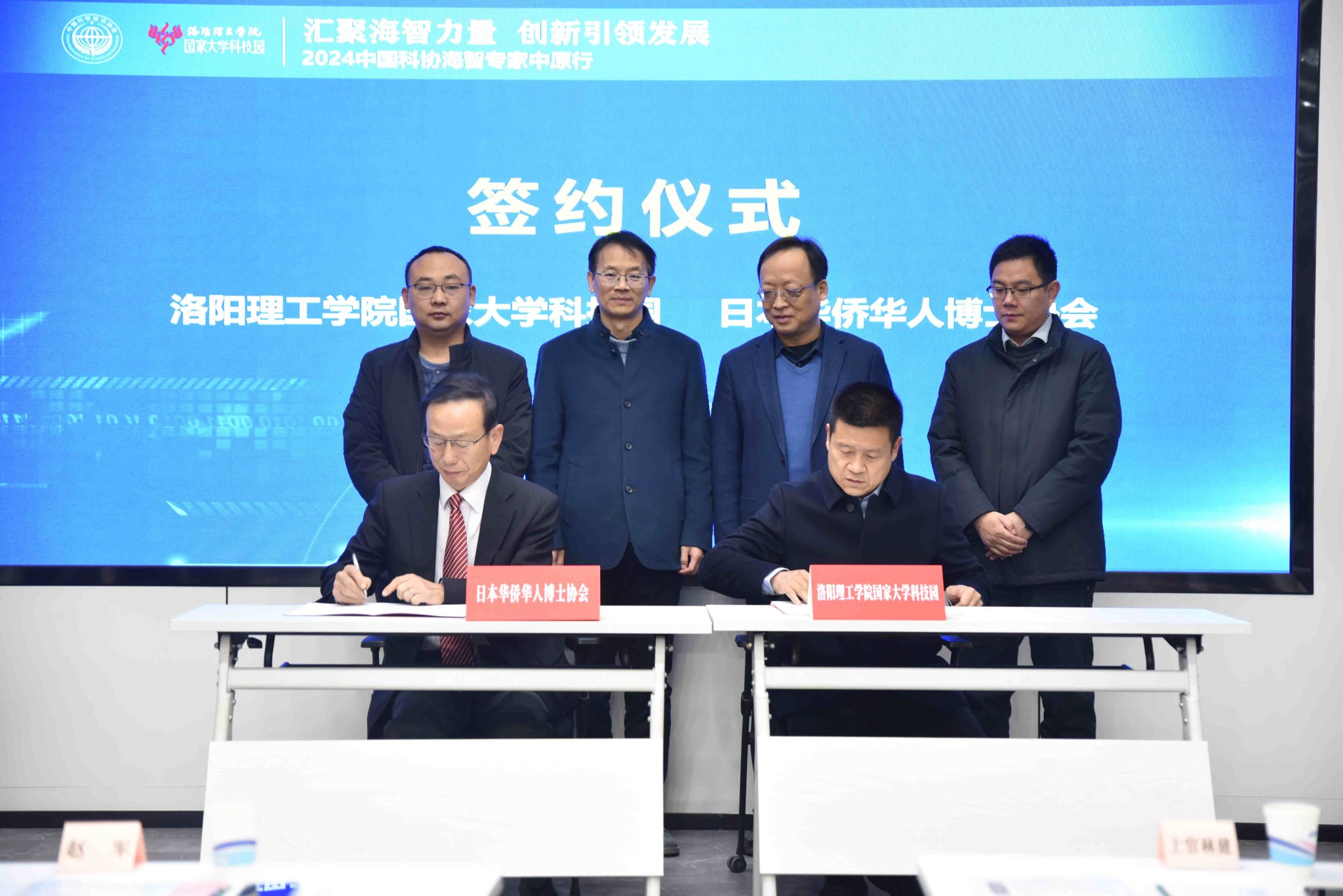 国家大学科技园与日本华侨华人博士协会签署了战略合作协议,上官林建与赵凤济共同为日本华侨华人博士协会洛阳理工专家服务站揭牌,为美高梅娱乐场