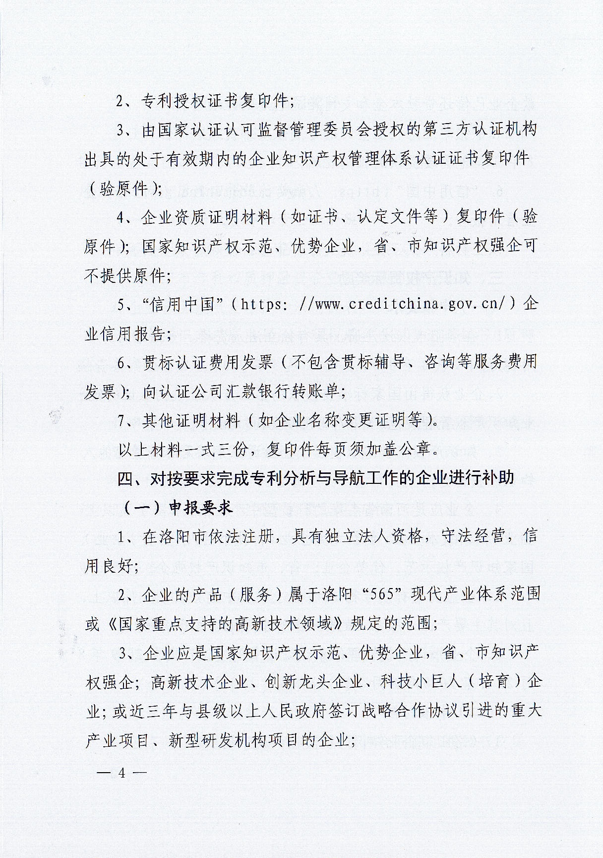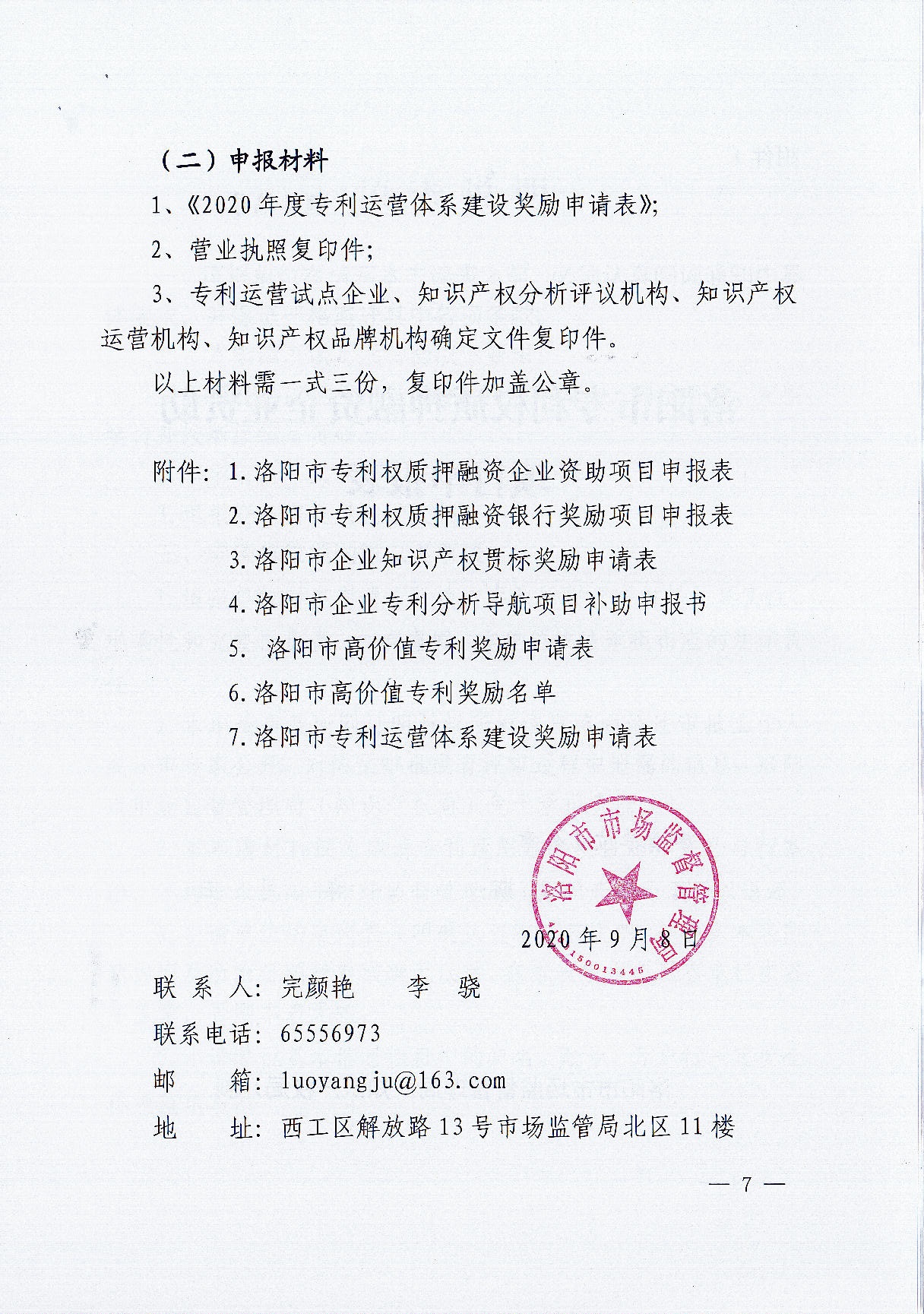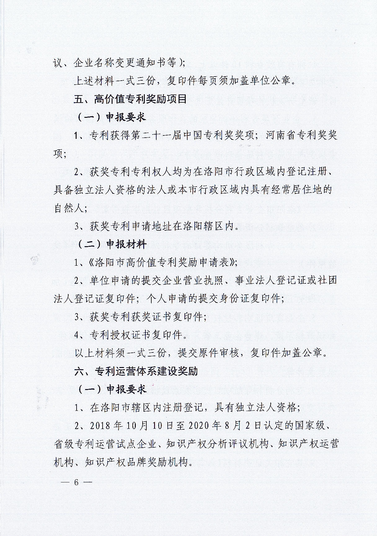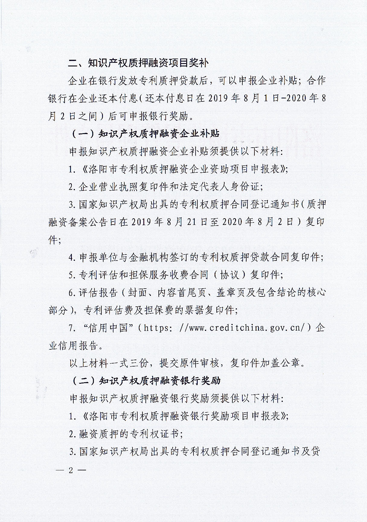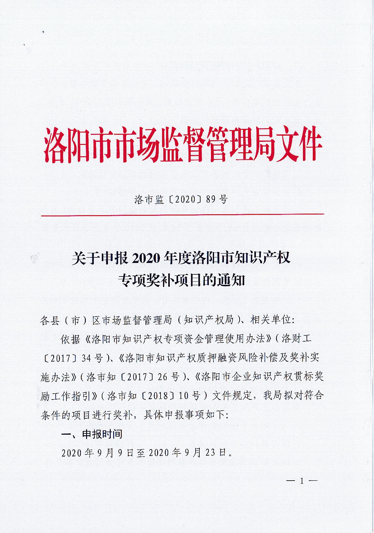关于申报2020年度洛阳市知识产权专项奖补项目的通知