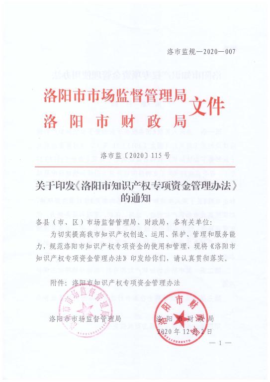 洛阳市知识产权专项资金管理办法