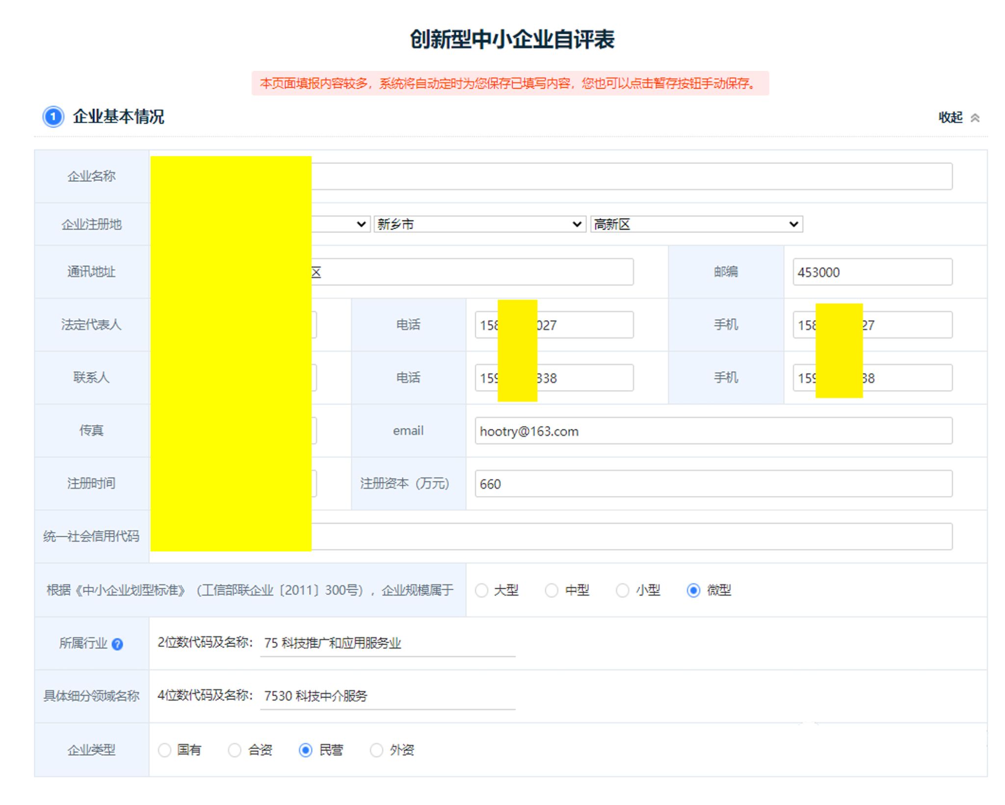 ↑第二步:企业基本情况中,注意所属行业及具体细分领域,与评价得分有关。