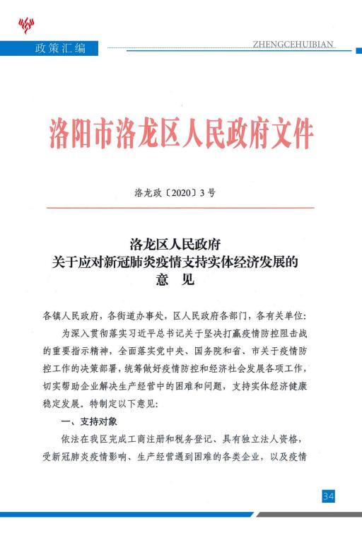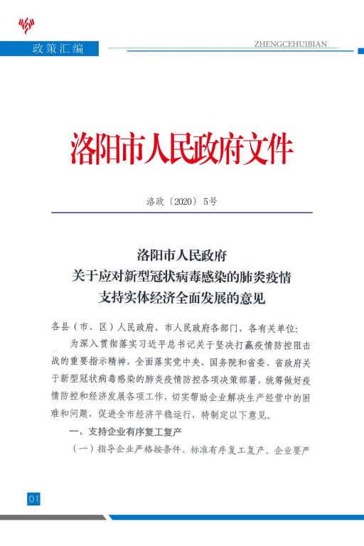 洛阳市人民政府关于应对新型冠状病毒感染的肺炎疫情支持实体经济全面发展的意见.pdf