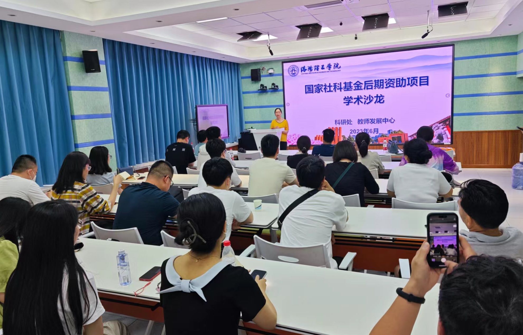 交流会上,两位教师分别从不同的角度分享了国社科基金后期资助项目的申报心得,翟爱玲教授结合自身的申报经历,为大家分享了国家社科基金后期资助项目申报书撰写的要点、注意事项、申报体会等经验。金勇强副教授从选题技巧、研究思路、申报书撰写及书稿结构等方面分享了自身的申报体会。会上,两位主讲嘉宾还与参会教师就国家社科基金项目的申报进行了热烈的互动。