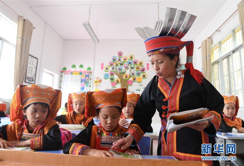 在广西金秀瑶族自治县忠良乡山界教学点,教师陶凤英在辅导学生学习。(6月4日新华社记者 陆波岸/摄)