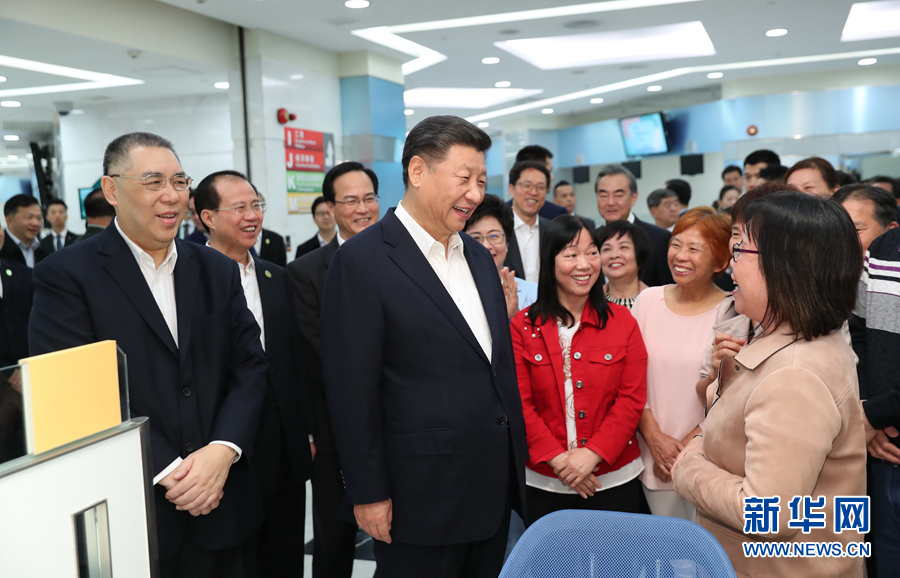 12月19日,国家主席习近平在澳门特别行政区行政长官崔世安陪同下,来到位于澳门黑沙环的政府综合服务中心和濠江中学附属英才美高梅娱乐场 ,同澳门市民和师生亲切交流。这是习近平在黑沙环政府综合服务中心同澳门市民亲切交流。 新华社记者 谢环驰 摄