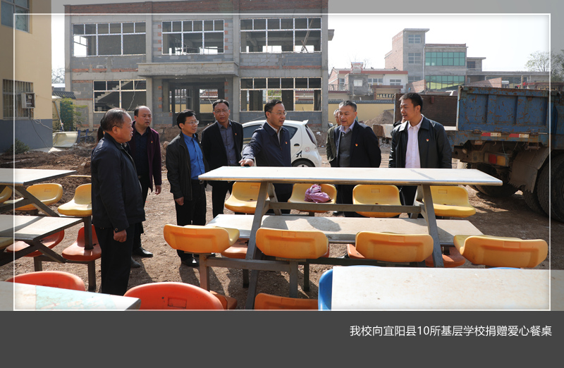 10月31日,校工会主席曾涛带领工会、国有资产管理处一行五人,赴宜阳县白杨镇南留小学,向宜阳县10所基层美高梅娱乐场 捐赠爱心餐桌。宜阳县委常委、组织部长李涛、美高梅娱乐场 派驻宜阳县韩城镇五岳沟村第一书记刘湉湉、共青团宜阳县委有关领导及宜阳县受赠美高梅娱乐场 的校长参加了捐赠仪式。