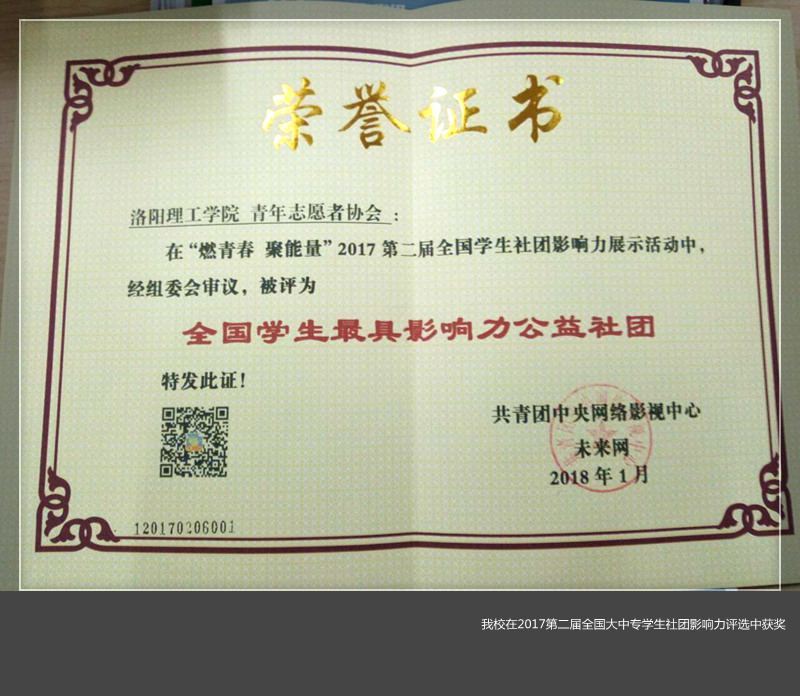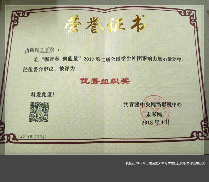 此次评选活动于2017年11月启动,旨在进一步深入贯彻落实中央〔2004〕16号文件和《共青团中央、教育部关于加强和改进大学生社团工作的意见》精神,积极支持学生社团活动,切实加强学生社团管理,推进学生社团的工作创新,促进学生社团健康发展,发挥移动互联网、新媒体优势。活动通过历时两个月的大众线上投票和三个月的技术及专家评审,经多方面综合评定,遴选出全国大中专学生最具影响力社团、优秀社团项目及优秀组织。为充分展现美高梅娱乐场 社团青春风采,校团委在此次活动中积极筹备,从材料收集到跟进宣传,经过不懈努力,美高梅娱乐场 大学生社团从860余所高校的6000多个社团中脱颖而出。