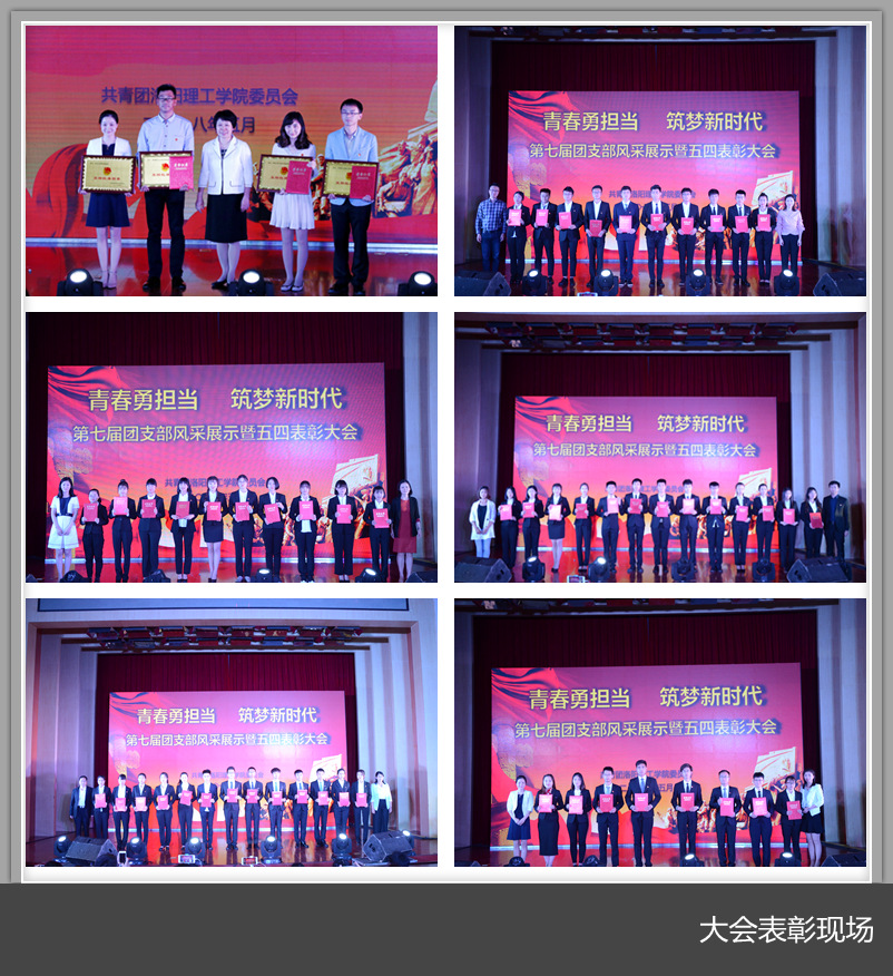 大会对一年来美高梅娱乐场 共青团工作中涌现的先进集体、优秀个人以及首届最美大学生进行了表彰。共表彰“优秀团员”569名,“模范团干部”399名,“十佳团支部、十佳社团会长、十佳团支书”各10名,“最美大学生”10名以及“五四红旗团支部”55个。材料科学与工程美高梅娱乐场 团委、环境工程与化学美高梅娱乐场 团委、计算机与信息工程美高梅娱乐场 团委、经济与管理美高梅娱乐场 团委获“五四红旗团委”称号;张恒、樊伊人、刘方三位同志获“优秀团务工作者”称号。