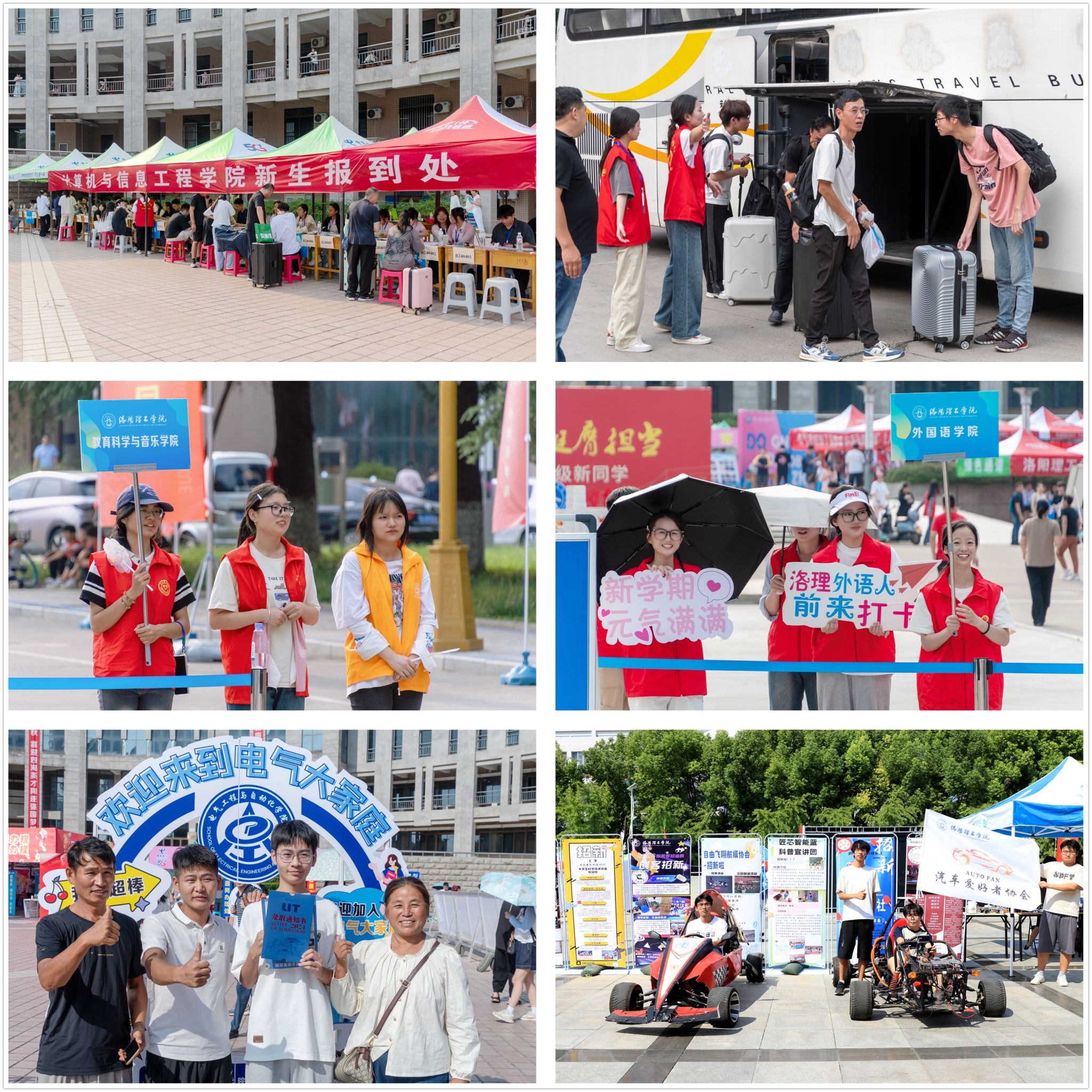 为了迎接2024级新同学的到来,美高梅娱乐场 全员发动,全力保障、全程服务。在火车站和高铁站组织大巴车运送新生和家长。在校园内,各二级美高梅娱乐场 结合自身学科特点和特色品牌把思政教育、科技创新、美育教育、劳动教育融入到迎新各项活动中。辅导员、班主任、学生志愿者齐上阵,帮助新生熟悉校园环境,融入大学生活。老师同学们一张张温暖的笑脸、一滴滴流淌的汗水、一个个鼓励的眼神,一句句暖心的话语让全体2024级新生感受到洛理工大家庭的爱和温暖。