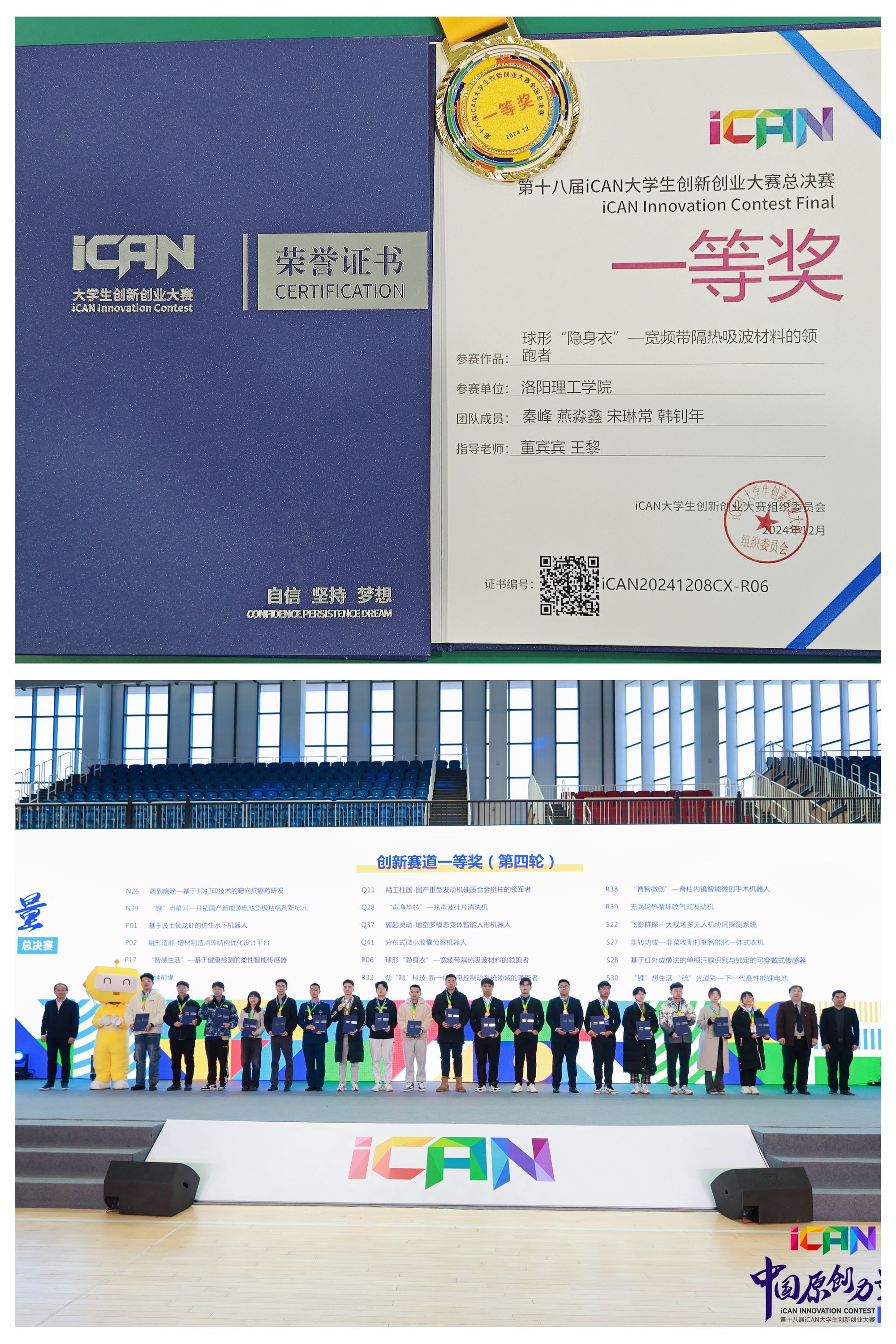 12月6日至8日,第十八届iCAN大学生创新创业大赛全国总决赛在山东农业工程美高梅娱乐场 (淄博校区)举办。在100位专业评委的严格评审下,经过紧张激烈的角逐,美高梅娱乐场 材料科学与工程美高梅娱乐场 秦峰、燕淼鑫、宋琳常、韩钊年团队的《球形“隐身衣”--宽频带隔热吸波材料的领跑者》项目(指导教师:董宾宾、王黎)斩获全国一等奖;计算机与信息工程美高梅娱乐场 选送的《云裳城—城市汉韵沉浸式体验平台》项目荣获全国三等奖。