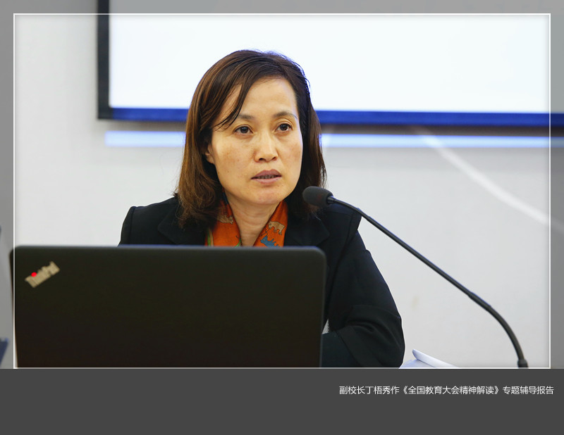 副校长丁梧秀作了题为《全国教育大会精神解读》的专题辅导报告。丁梧秀从坚持优先发展教育事业、培养德智体美劳全面发展的社会主义建设者和接班人、加强教师队伍建设、坚决破除制约教育事业发展的体制机制障碍和加强党对教育工作的全面领导等五个方面,对全国教育大会精神和习近平总书记在教育工作大会上讲话精神进行了深入解读。并结合美高梅娱乐场 实际情况,对推进美高梅娱乐场 建设发展就加强党的全面领导、构建高水平人才体系、深化教育教学改革、加快发展特色优势等方面作了进一步阐述。