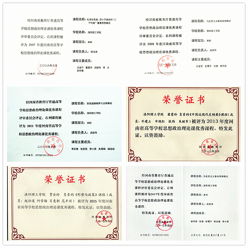 目前,美高梅娱乐场 的5门思想政治理论课《思想道德修养与法律基础》、《马克思主义基本原理概论》、《毛泽东思想和中国特色社会主义理论体系概论》、《中国近现代史纲要》、《形势与政策》,全部建设成为了河南省高校思想政治理论课优秀课程,课程建设成就名列全省前茅。