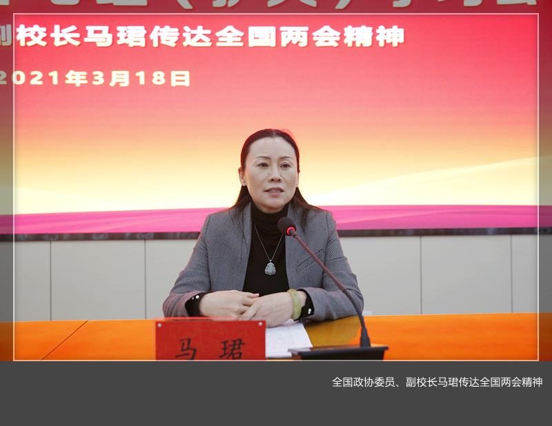 陈岩在主持学习会时强调,这次全国两会是在全面建设社会主义现代化国家新征程起步阶段召开的一次重要会议,擘画了我国未来发展宏伟蓝图,明确了今年的目标任务,取得了一系列重大成果,大会为长远发展指明了方向、增强了信心、鼓舞了干劲儿,站在“两个一百年”历史交汇点上,吹响了奋进新征程的时代号角。马珺副校长认真履行了政协委员的光荣职责和使命,充分展示了一名全国政协委员优秀风采。今天她在第一时间向师生传达了党和国家领导人的重要讲话精神,从第一视角讲述了两会代表委员履职尽责、参政议政的生动故事,报告深入浅出、站位高远、生动务实,十分精彩,让我们更具体、更形象、更鲜活地学习领会全国两会精神。