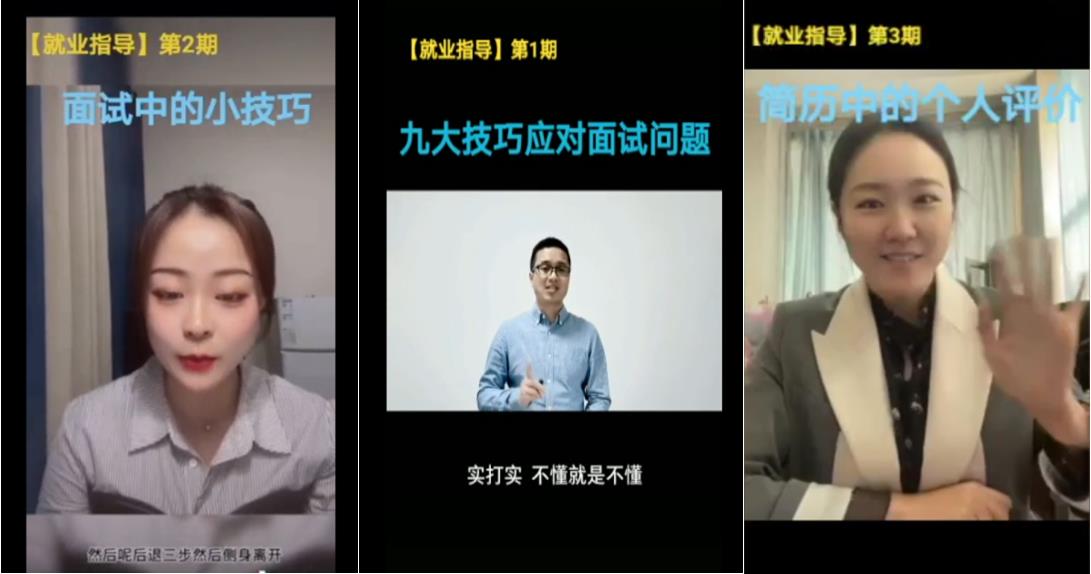 (2)“我把用心服务献给党”:学工人员分期分专题录制微视频为应届毕业生提供更加方便的就业指导,将“办实事、开新局”落到实处。