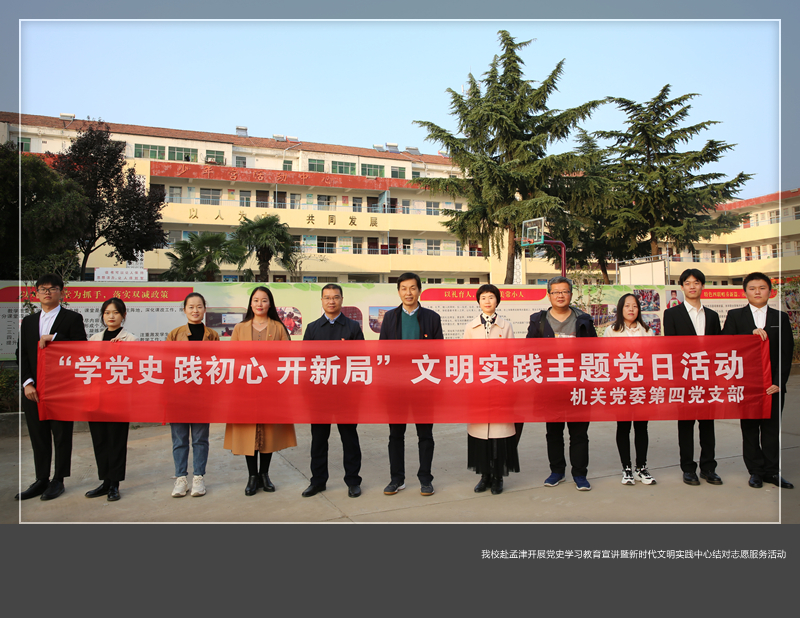 美高梅娱乐场 赴孟津开展党史学习教育宣讲暨新时代文明实践中心结对志愿服务活动。活动分为深入学习贯彻习近平总书记“七一”重要讲话精神宣讲、环保知识宣讲、志愿支教等环节,共有来自宣传部、环境工程与化学美高梅娱乐场 、艺术设计美高梅娱乐场 、马克思主义美高梅娱乐场 和体育教学部的师生志愿者40余人参加了本次活动。