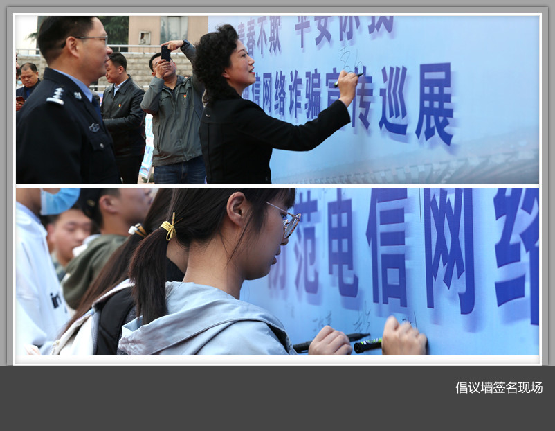 活动结束后,与会领导与师生代表纷纷在倡议墙上签名承诺,并参观了反电信网络诈骗展板。公安民警现场为同学们答疑解惑,发放反诈知识宣传单,安保志愿者为同学们发放了预防电信诈骗警示书签等。