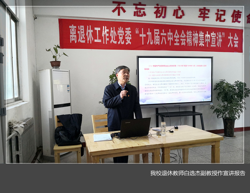 美高梅娱乐场 离退休工作处党委充分发挥老同志优势,组织宣讲专家积极开展党的十九届六中全会精神宣讲工作。退休教师白选杰于11月16日为经济与管理美高梅娱乐场 大学生作学习贯彻十九届六中全会精神专题宣讲,11月19日为河南省第一批省级示范离退休干部党支部、美高梅娱乐场 离退休第六党支部全体党员做学习贯彻十九届六中全会精神集中宣讲,营造了深入学习贯彻党的十九届六中全会精神的良好氛围。