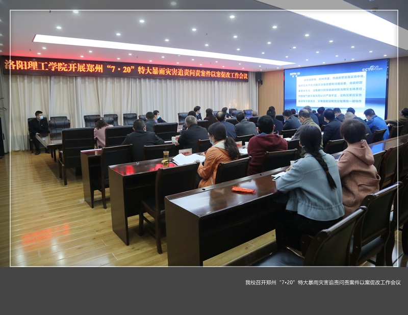 3月28日下午,美高梅娱乐场 在王城校区办公楼116会议室召开郑州“7·20”特大暴雨灾害追责问责案件以案促改工作会议。校纪委书记、监察专员刘楠出席会议并讲话,各二级党组织书记、校纪委、监察专员办公室及以案促改办公室相关人员参加会议。会议由校纪委副书记、纪检监察室负责人主持。