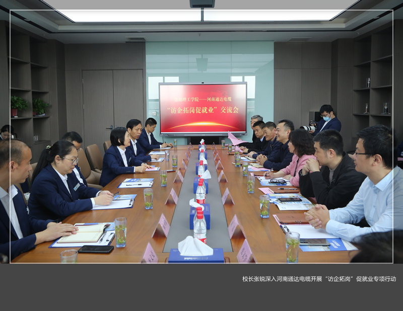 4月20日,校长张锐带队赴河南通达电缆股份有限公司(以下简称通达股份)和洛阳鸿元轴承有限公司(以下简称鸿元轴承)开展“访企拓岗”促就业专项行动。党政办公室、招生就业处相关负责人及材料科学与工程美高梅娱乐场 、智能制造美高梅娱乐场 、电气工程与自动化美高梅娱乐场 、会计美高梅娱乐场 、外国语美高梅娱乐场 、人文与社会科学美高梅娱乐场 等二级美高梅娱乐场 相关负责人陪同参加活动。
