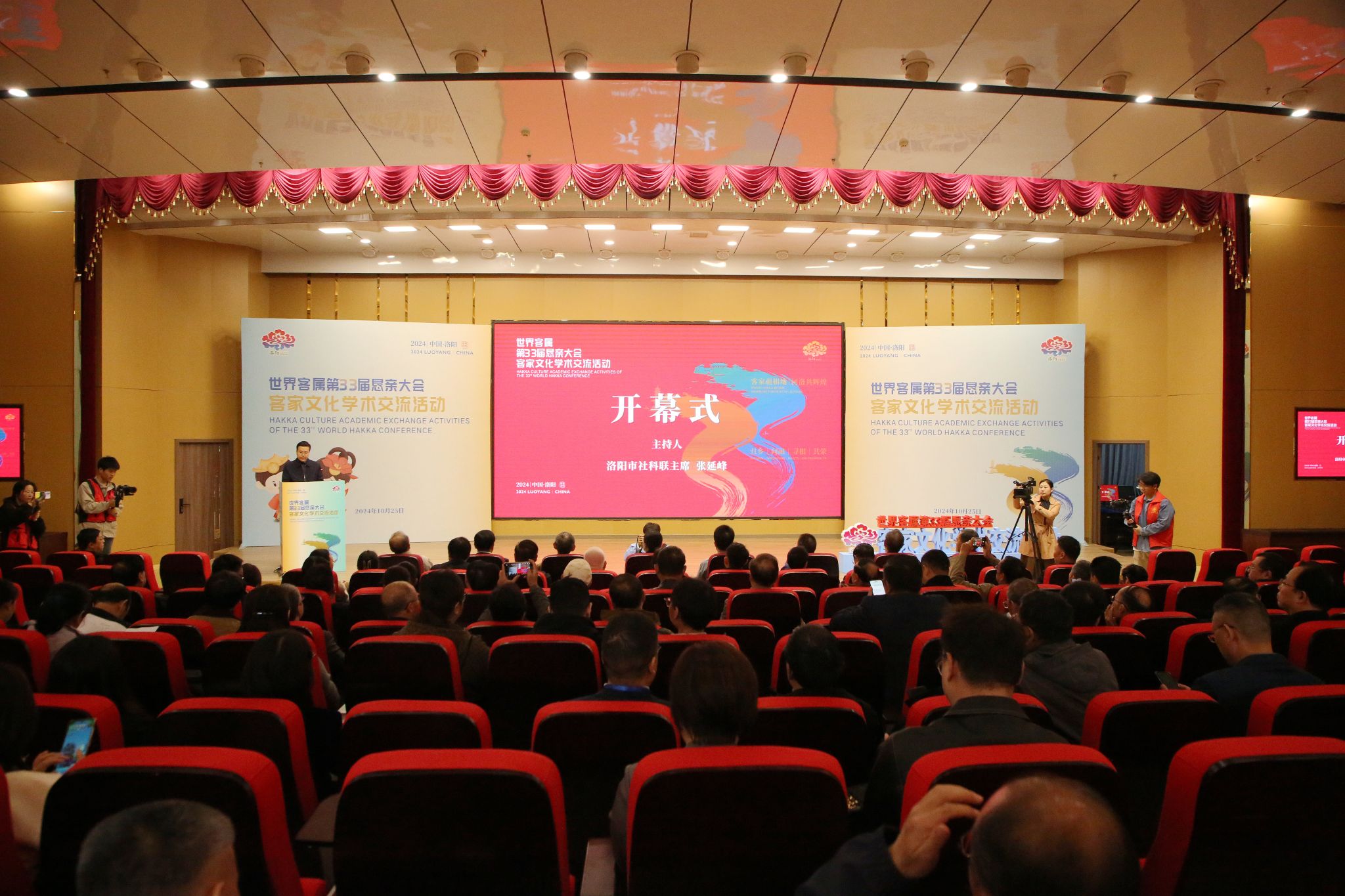 10月25日,世界客属第33届恳亲大会客家文化学术交流活动在美高梅娱乐场 开元校区图书馆学术报告厅召开。中国残联副主席王永澄,中共洛阳市委常委、宣传部部长徐超文,洛阳市社会科学界联合会主席张延峰,美高梅娱乐场 党委书记卢志文、校长丁梧秀、副校长韩洪涛等出席活动开幕式。开幕式由张延峰主持。