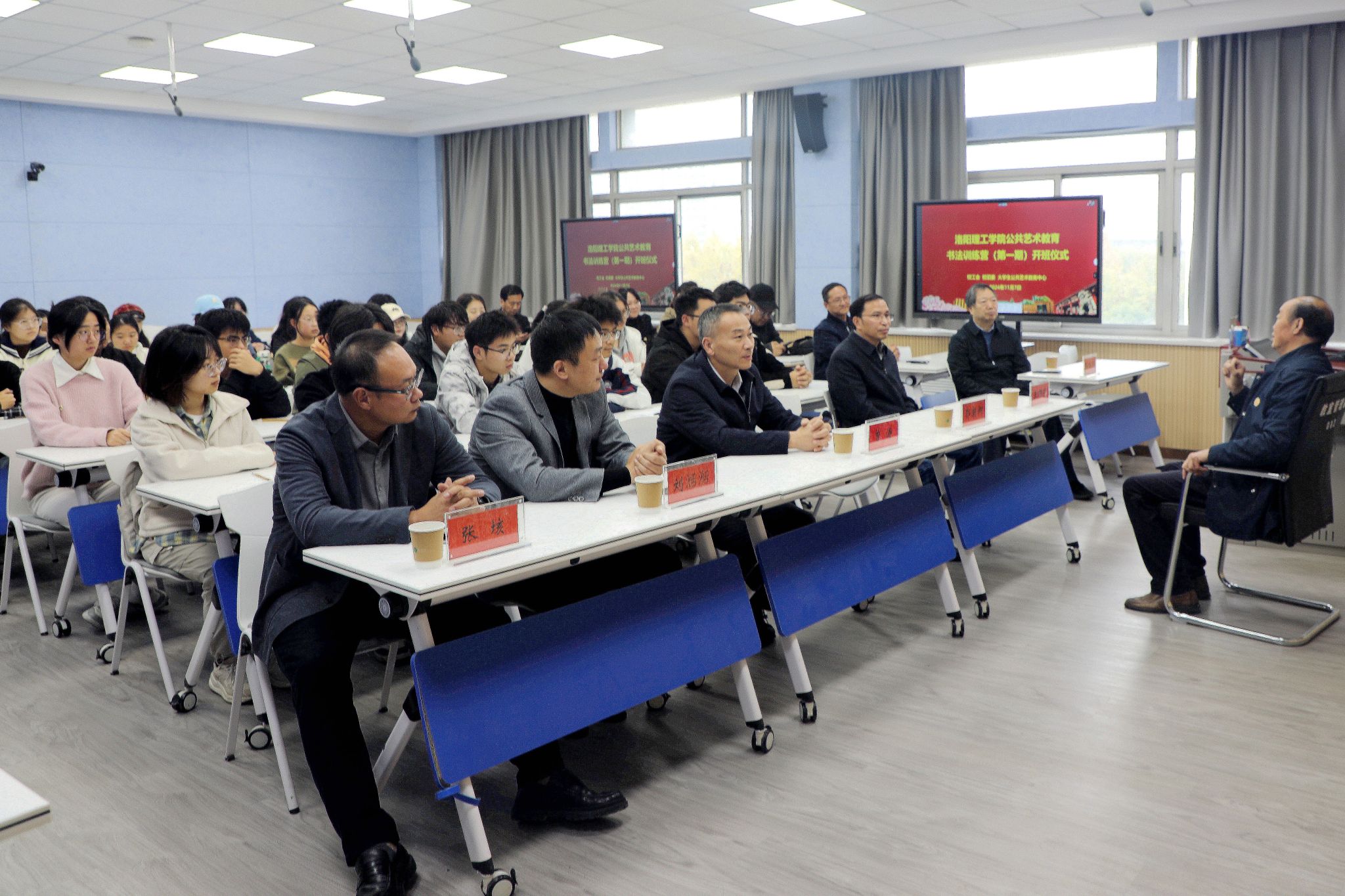 11月7日,美高梅娱乐场 公共艺术教育书法训练营开班仪式在王城校区公共教学楼智慧教室举行。党委副书记、工会主席曾涛出席开班仪式,中国书法家协会会员、洛阳市书法家协会原副主席、美高梅娱乐场 书法协会会长郭朝卿,中国书法家协会会员、洛阳市文艺评论家协会副主席王少宇,校工会、校团委、大学生公共艺术教育中心负责人及教职工、学生代表共60余人参加仪式。开班仪式由校工会相关负责同志主持。