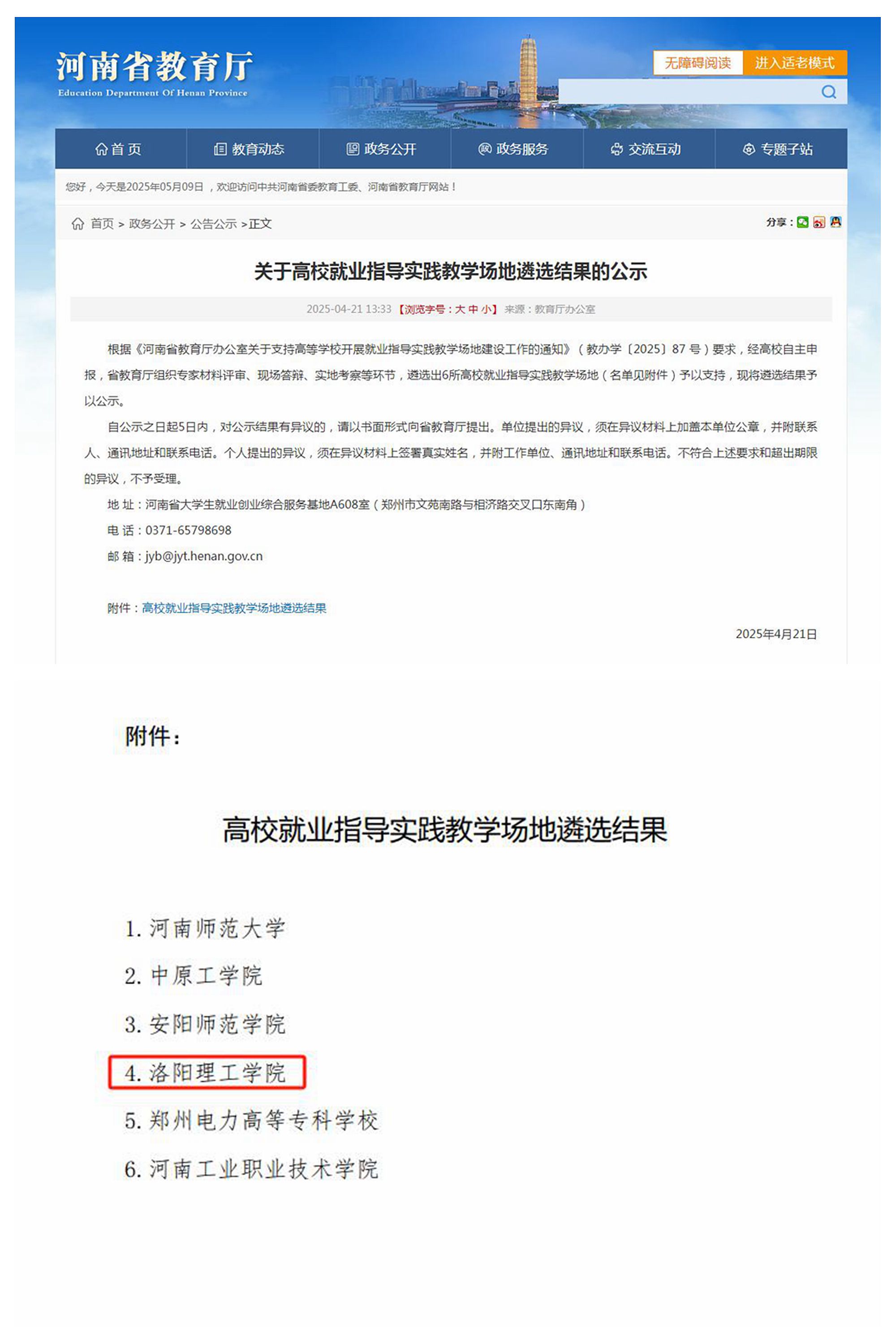 近日,河南省教育厅公布了首批入选就业指导实践教学场地建设单位的6所高校名单,美高梅娱乐场 成功获选。