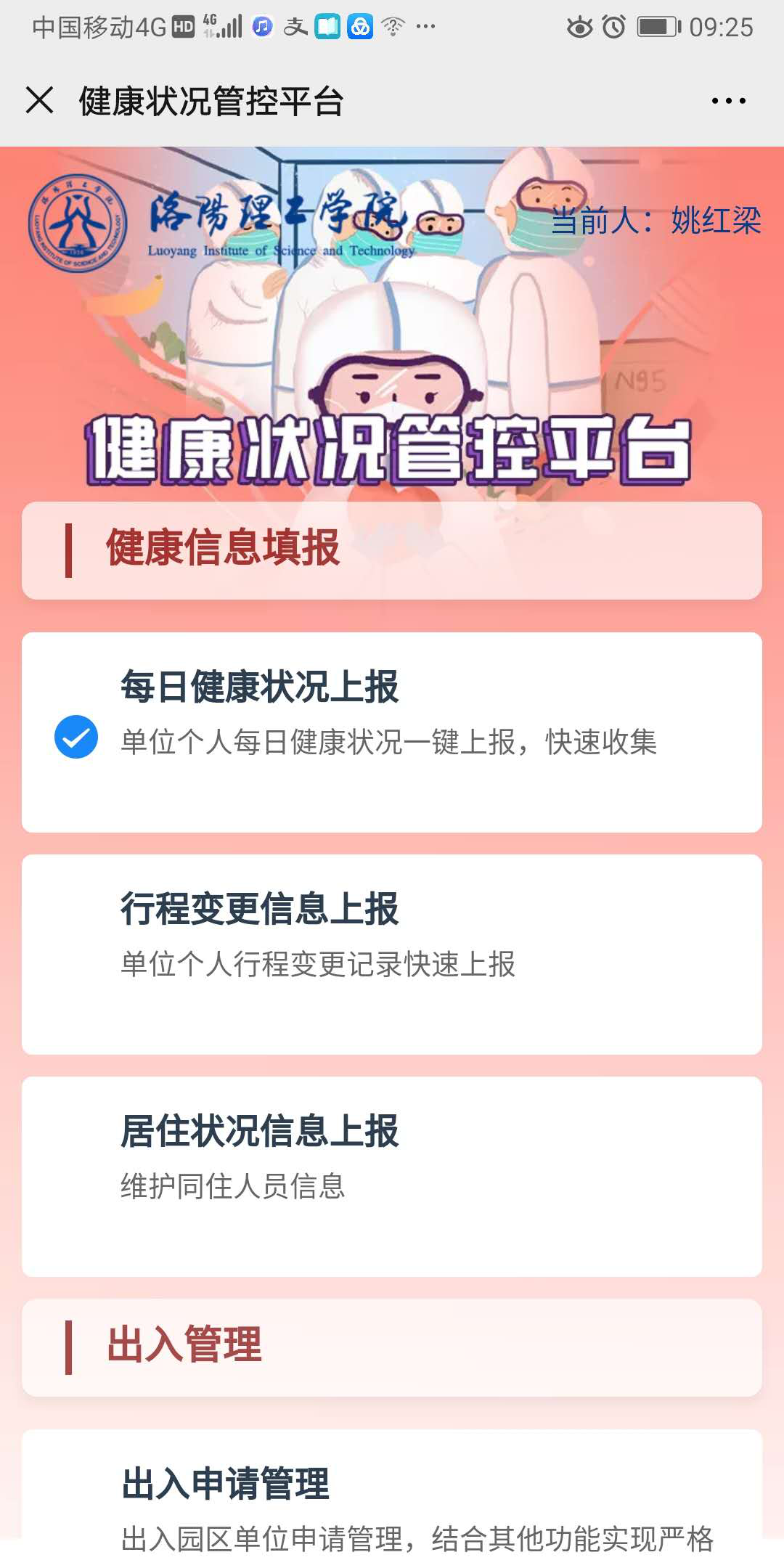 健康状况管控平台”,为教职工人人建立了健康档案卡和体温台账。