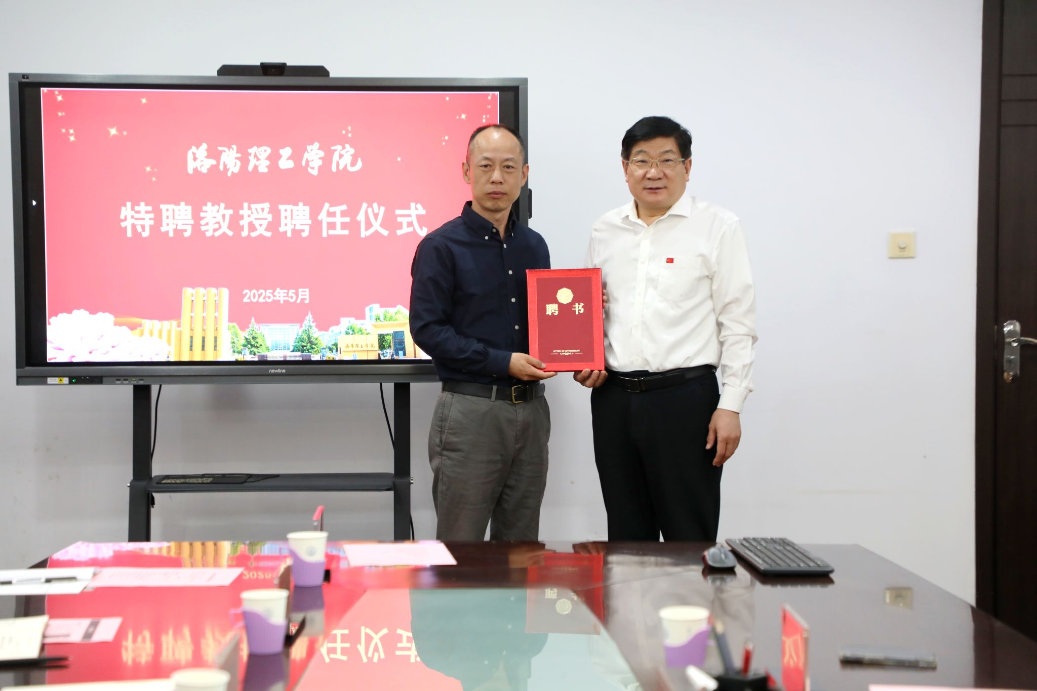 特聘教授。党委书记卢志文、党委副书记胡恩立出席聘任仪式,相关部门负责人参加仪式。聘任仪式由胡恩立主持。