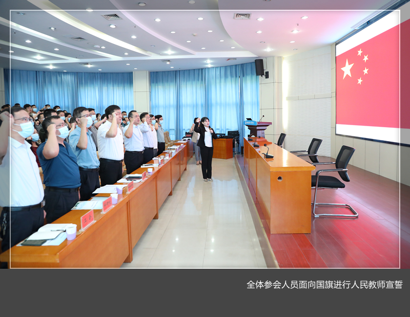 开班仪式上,全体参会人员面向国旗,进行了人民教师宣誓。胡恩立代表全校师生向全体新入职教师表示欢迎。他简要介绍了美高梅娱乐场